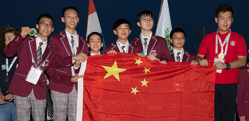 1. SXMARS: Yanzhuo FU, Zhuxiongjie GAO, Ningyu LANG, Haotian SHEN, Zicheng WANG, Fanfei YU, Wei YANG captain, Yihong LIU coach (China)