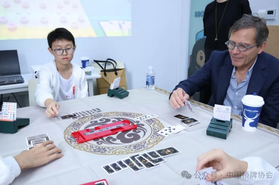 Later, the WBF President himself sat at the table to play a few boards with some of the young participants, marking a pleasant moment of friendship and shared enjoyment of the game, in the atmosphere of enthusiasm and learning that defines bridge at every level.