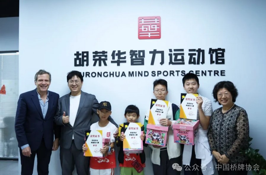 World Bridge Federation President Franck Riehm visited the Hu Ronghua Bridge Club in Shanghai on 19 October, during his trip to China for the 2025 Buffett Cup. He was welcomed by Mr. Dai Liu, President of the Shanghai Bridge Association, Mr. Ding Jianhua, Deputy Secretary General, and Ms. Hu Ailian, General Manager of the club, together with the club’s management team.